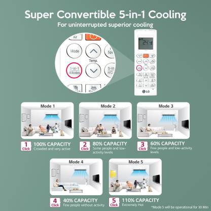 LG 3 Star Split Dual Inverter Convertible 5-in-1 Cooling HD Filter with Anti-Virus Protection AC - White